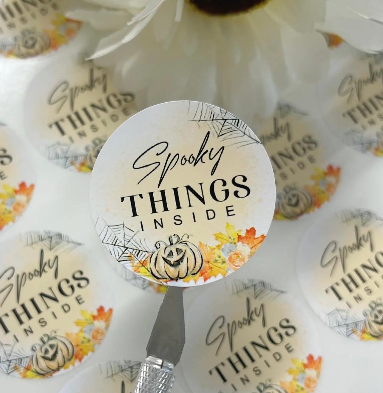Get your customers in the Halloween spirit with our Halloween Spooky Things Inside Stickers. Perfect for small businesses wanting to add a festive touch to their packaging, these fun and spooky stickers make any product feel special. Whether you’re preparing seasonal treats, promoting a Halloween-themed event, or simply wanting to surprise your customers with some holiday flair, these custom-designed stickers are the perfect addition. Featuring eerie designs and customizable text, they’ll add that spooky charm your packaging needs to stand out.