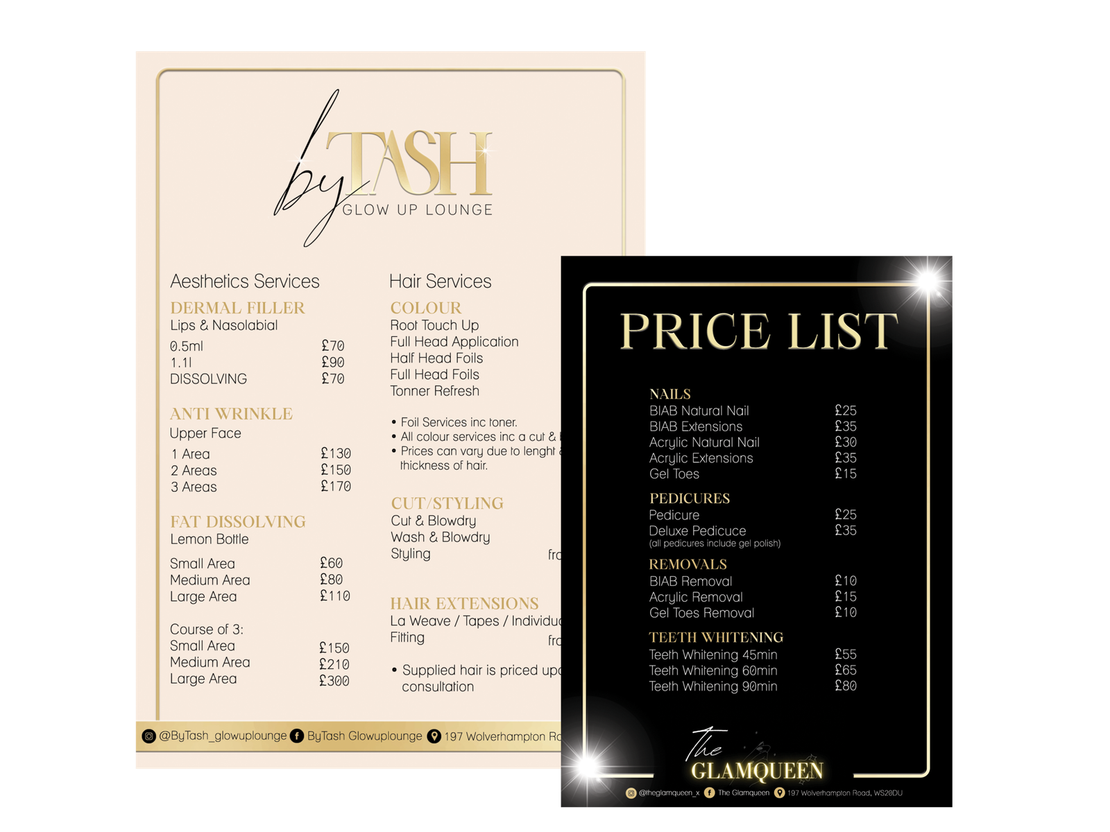 Create a lasting impression with Personalised Menu or Price List Flyers, ideal for salons, shops, or bakeries. These fully customizable flyers let you showcase your services or products in style. Printed on premium 170gsm paper, they provide a sleek and professional finish while maintaining durability.
